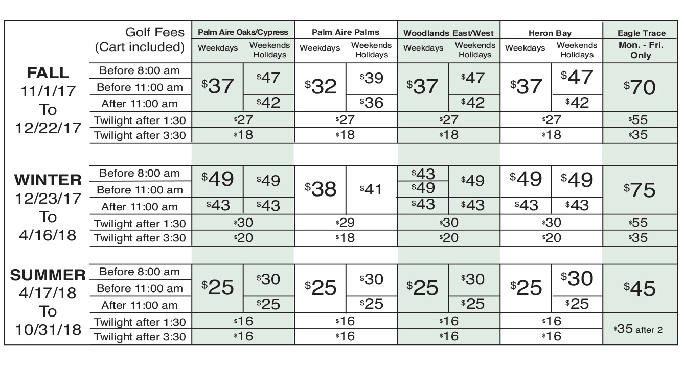 • Locker, bag storage & computer handicapping services are available at an additional charge